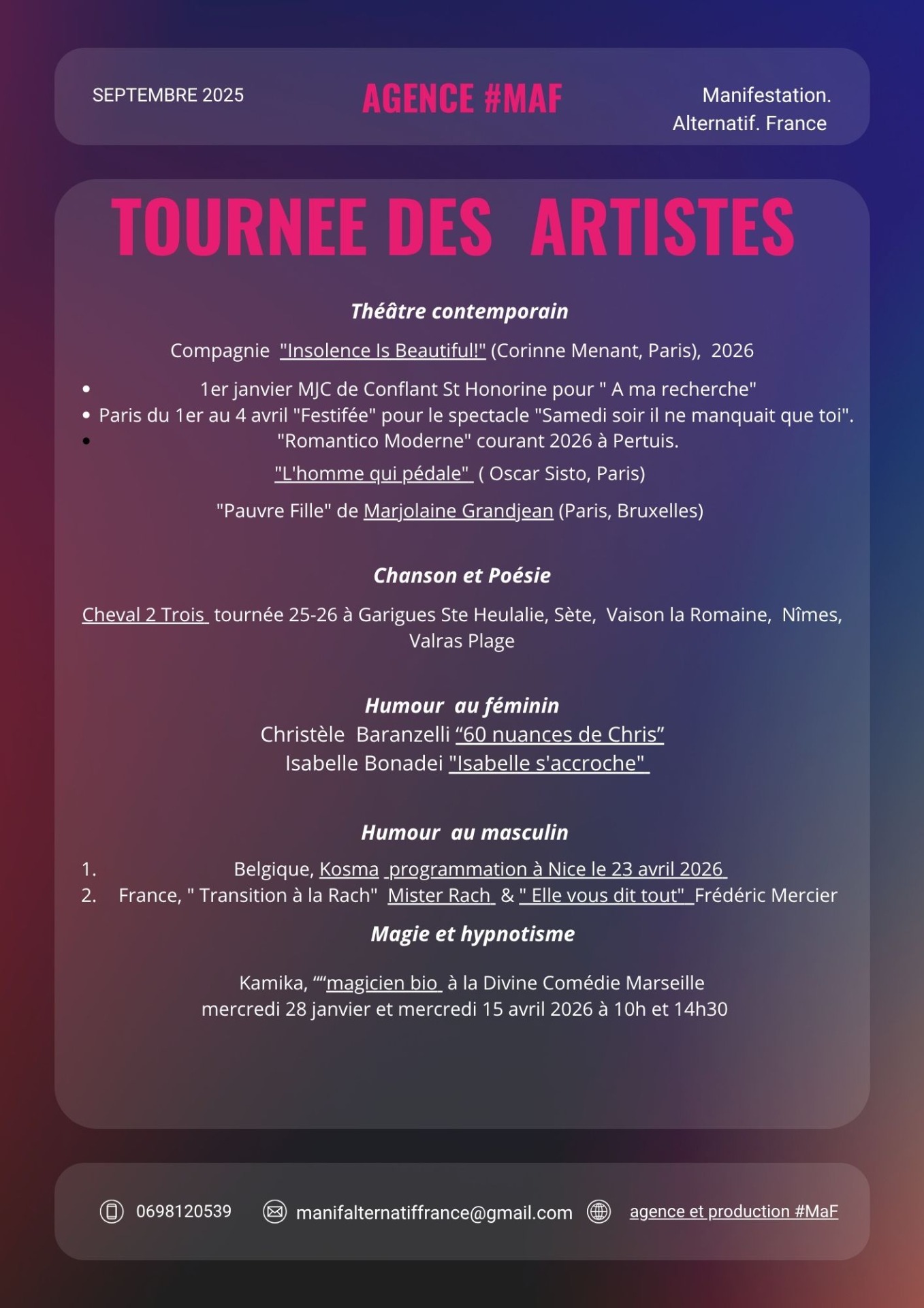 Agence et Diffusion artistique Manifestation. Alternatif. France