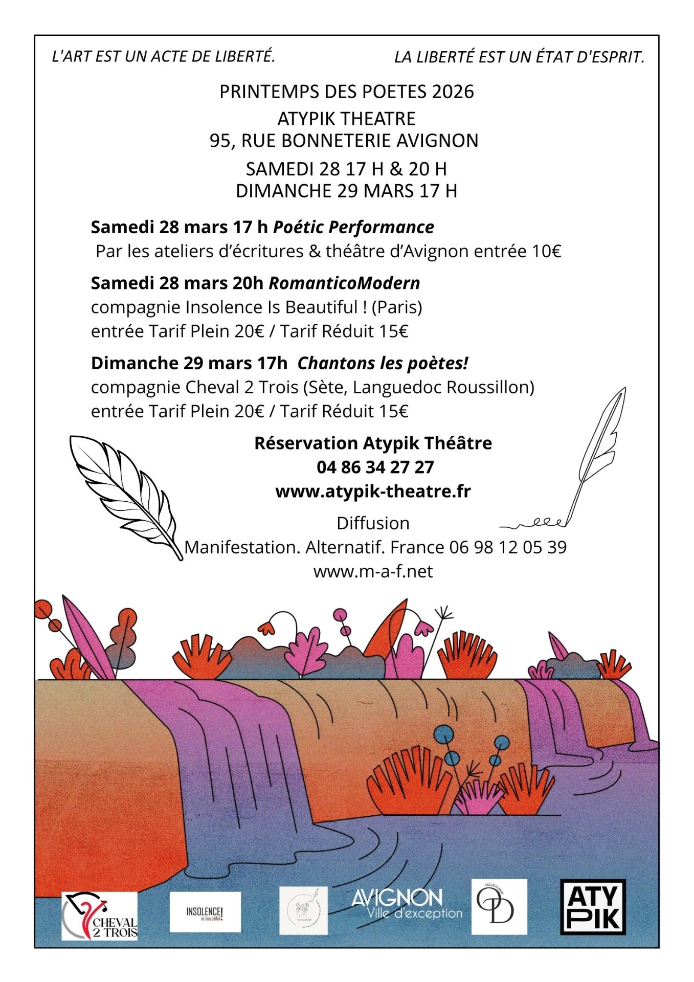 - le 28 mars, dans le cadre du "Printemps des Poètes", à l'Atypik théâtre